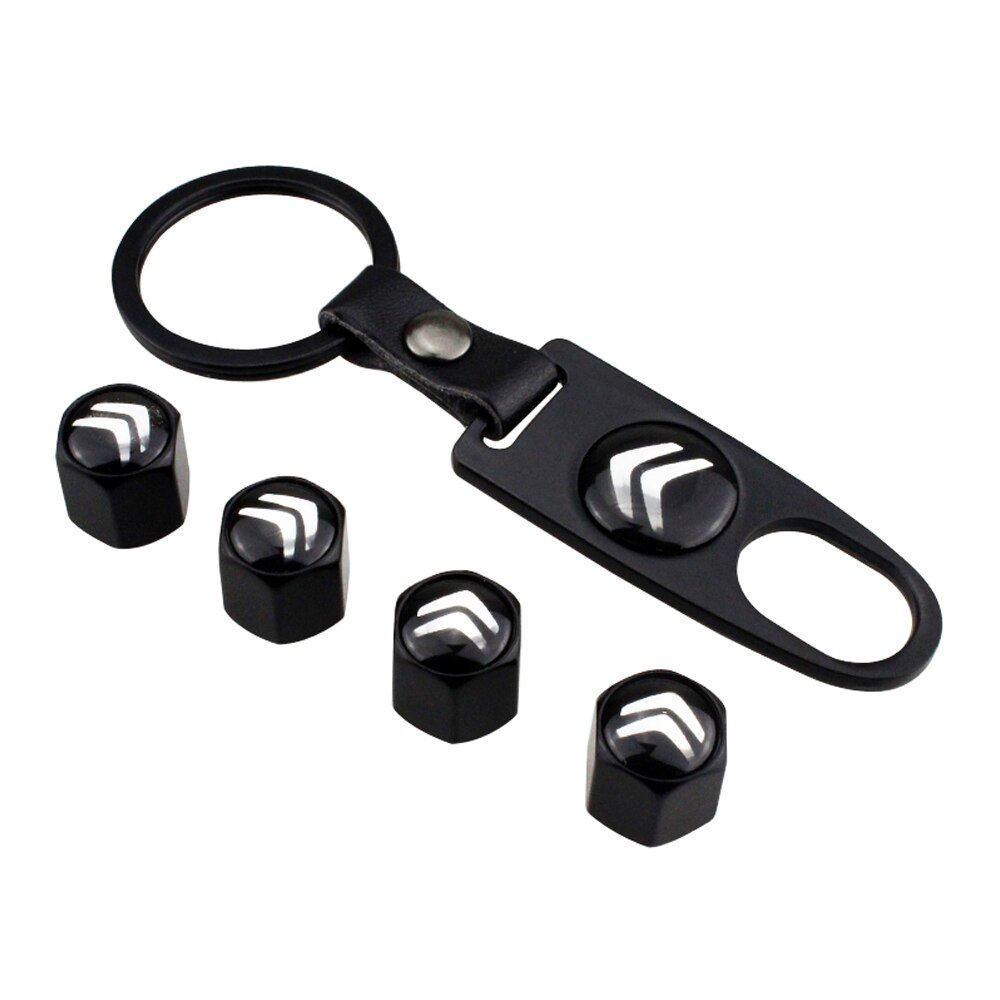 - 4x Tampa de Válvula/Bico/Ventil Citroen Preta c/ Chaveiro