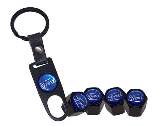- 4x Tampa de Válvula/Bico/Ventil FORD Preta c/ Chaveiro
